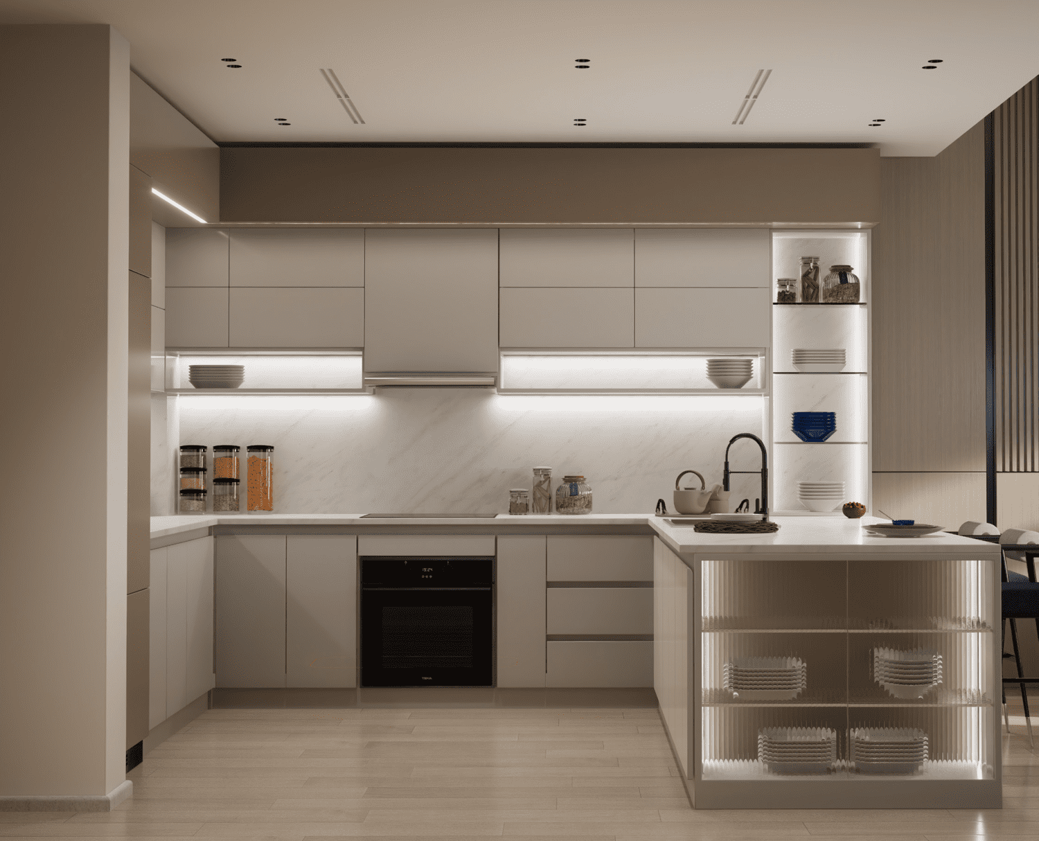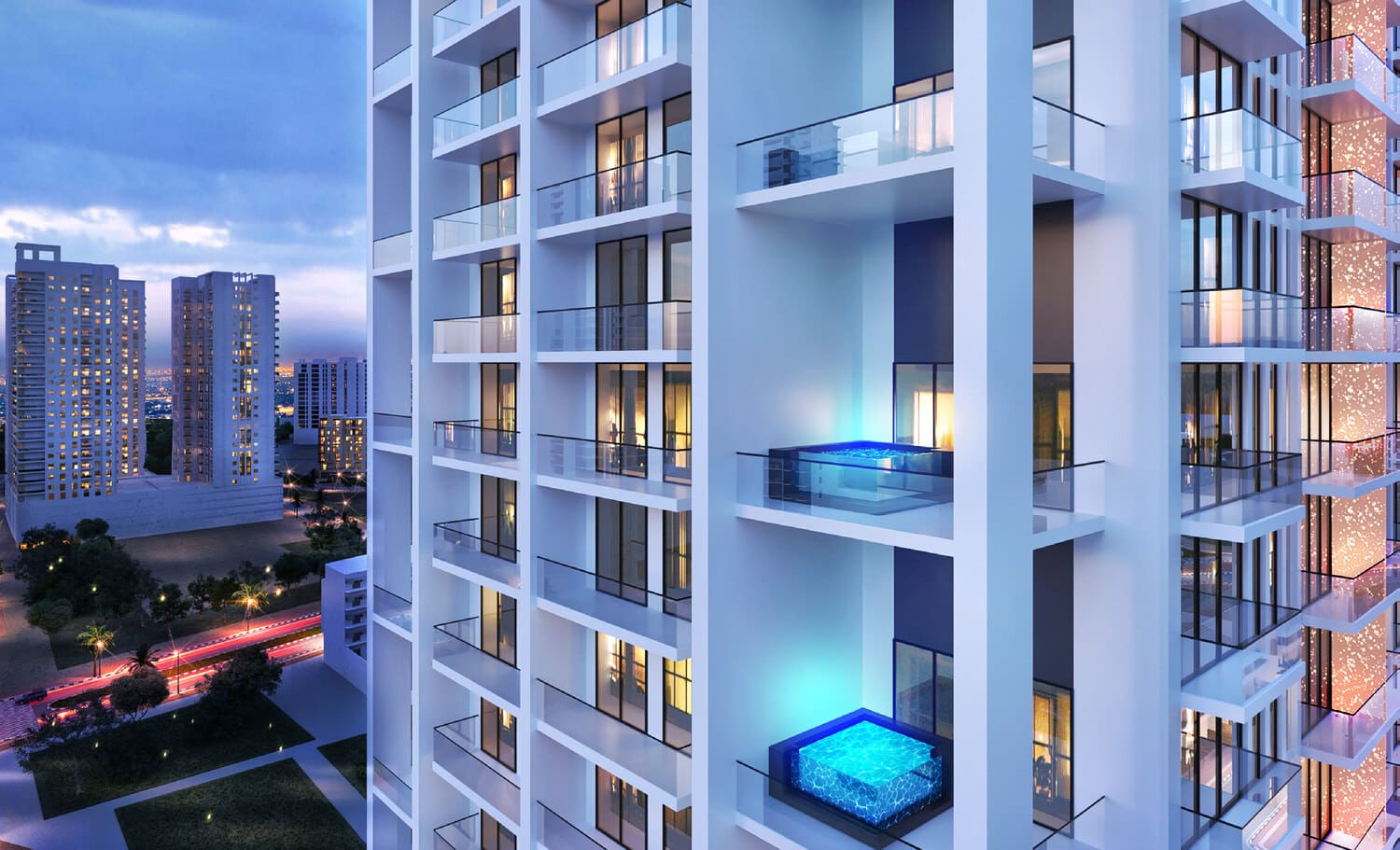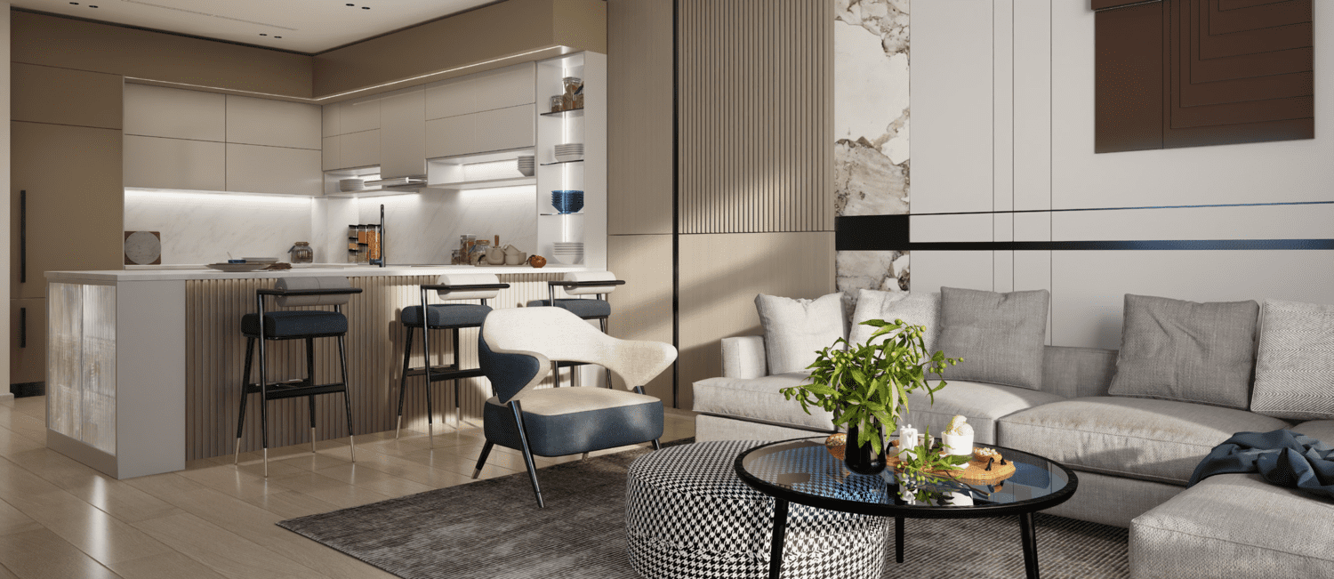 The lavish materials and uncompromised finishing throughout the building depict supreme quality and craftsmanship from only the most distinguished of international suppliers. All the fittings and fixtures within the apartments are handpicked to perfectly compliment the interior design. The sliding glass doors and windows create a perfect balance between interior and exterior spaces while maintaining the highest level of environmental control and functionality.