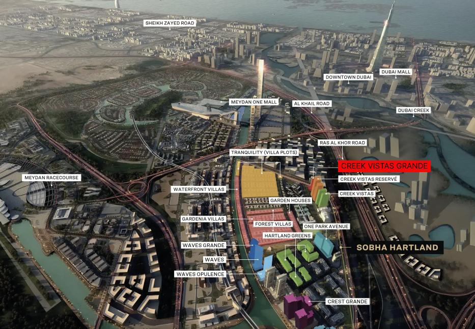 Creek Vistas Grande presents a collection of urbane and refined residences with 3 distinct advantages of uninterrupted views, exceptional quality and an abundance of amenities. It is a perfect gateway to the self-contained world of Sobha Hartland and perfectly encapsulates what the community represents in terms of elegance of design, luxury of convenience and backdrop of views that encompass Burj Khalifa, Downtown Dubai and Ras Al Khor Wildlife Sanctuary.Â