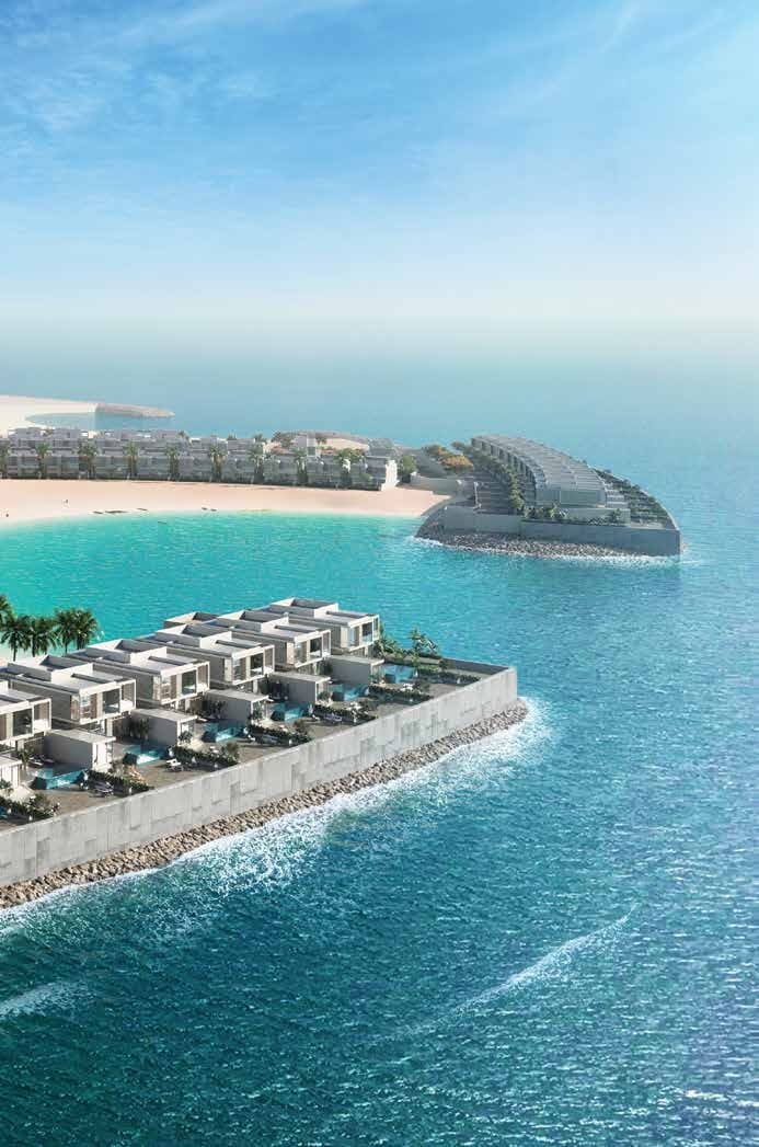 Villas&Townhouses. The interiors make a statement with their open plan living, dining, and kitchen space and the showpiece staircase links the ground level and the first floor with an accent stone wall. Echoing a high-end beach resort inspired feel, the interiors feature modern materials and details. Every detail makes life here extraordinary and carefree. Watch the sunrise from one of the expansive and luxurious 4-bedroom villas with direct beach access or an incredible first-row sea view.Â