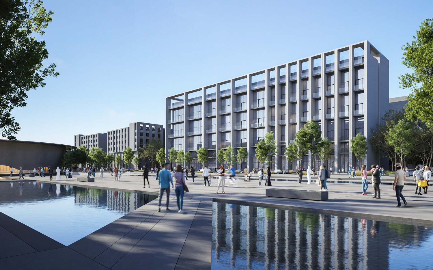 Spread over two levels, il teatro’s outdoor plaza is a beautifully designed public space that floats above a water feature and contains a large amphitheatre. Brought to life by a series of events and activities, the plaza is designed to inspire local artists and the growing creative community in the UAE. Residents living nearby will be able to enjoy access to il teatro via two ‘green spines’ or urban parks that contain lush foliage and dense tree coverage, with workshops, artist studios and cafes facing the parks on both sides. Those living in the neighbourhood will also enjoy a rich calendar of events, activations, performances and exhibitions, all just a short walk away from their front door.