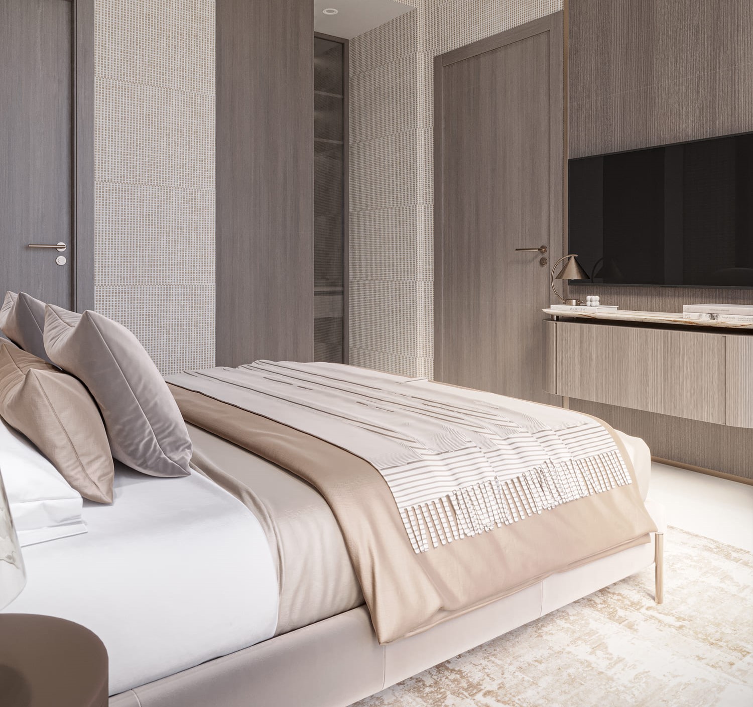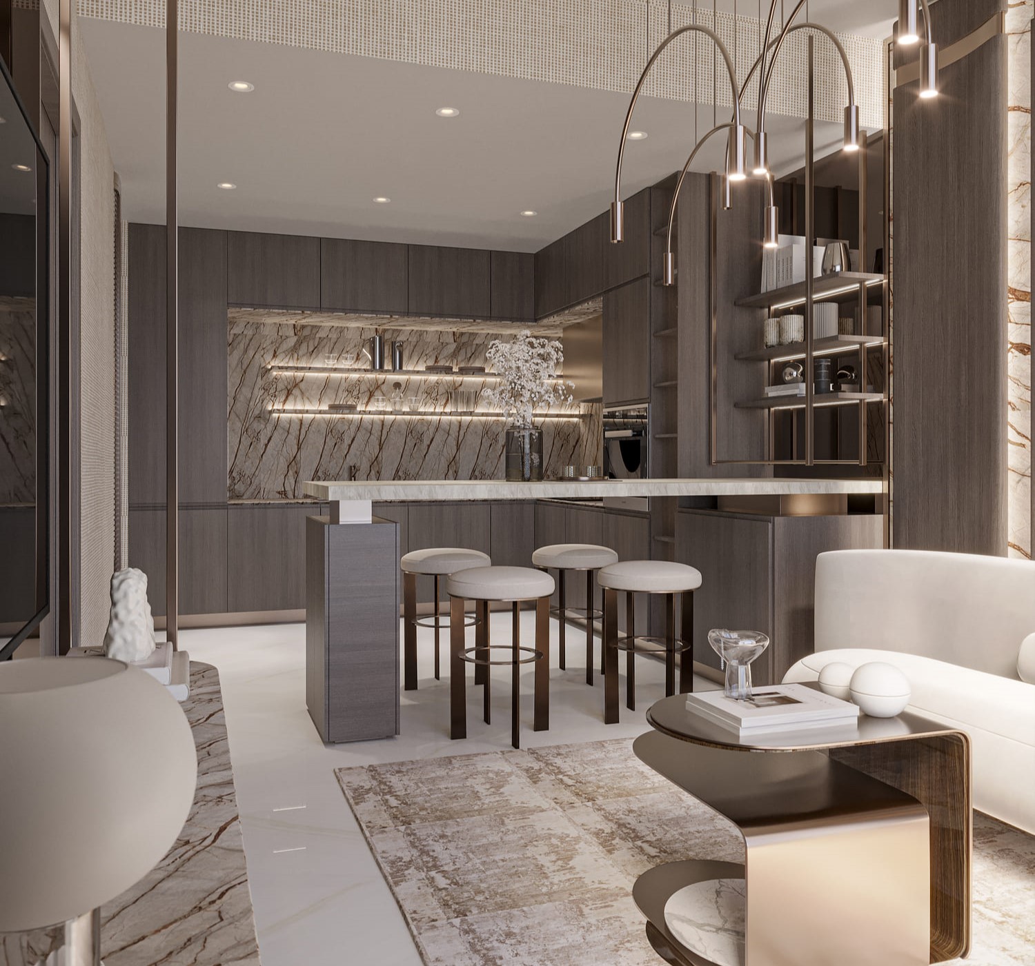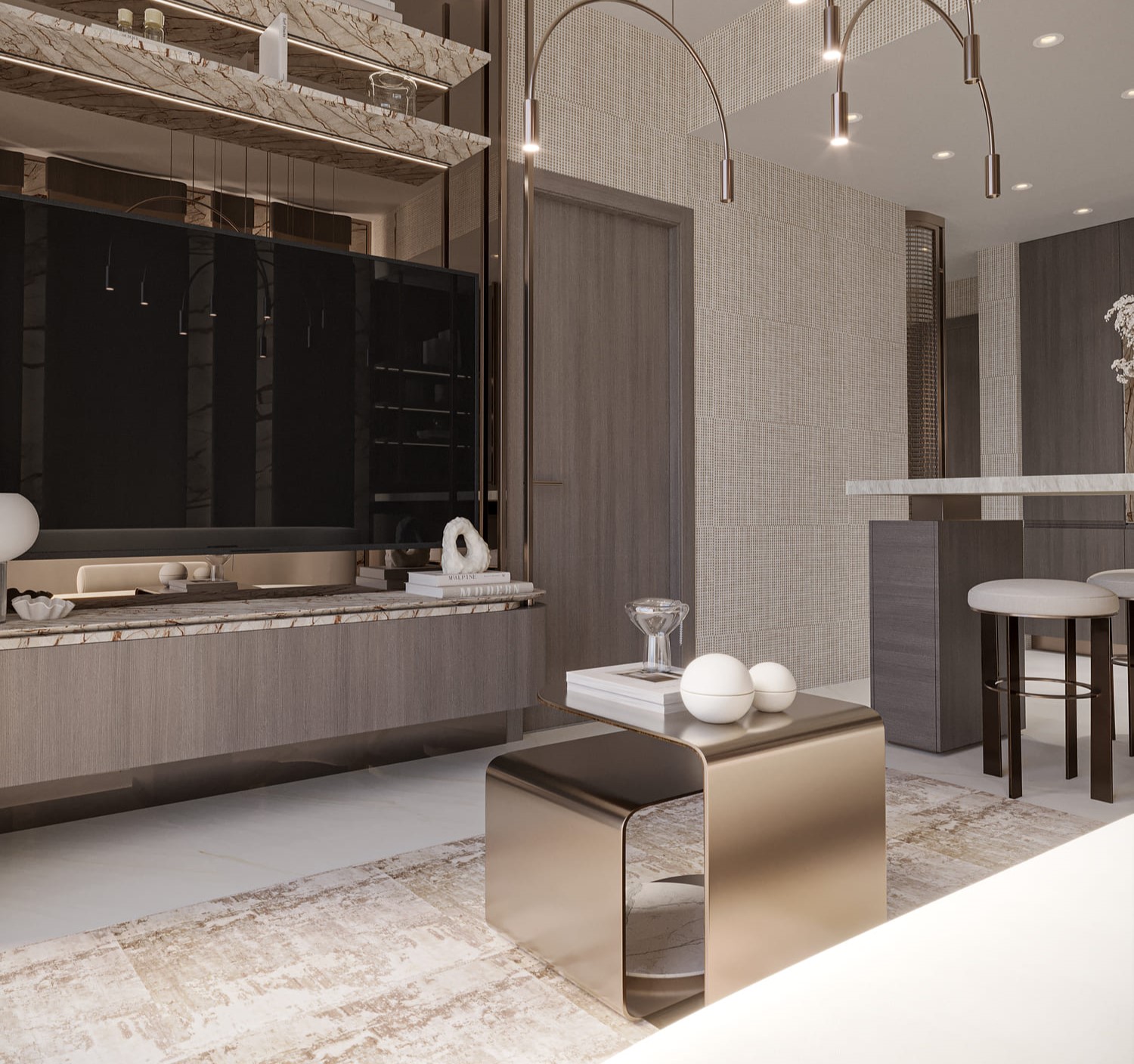 Фасад демонстрирует коллекцию роскошных резиденций, воплощающих видение изысканной городской жизни. С первых шагов в комплекс вас встречает атмосфера современной элегантности и расслабленного досуга. Апартаменты — это шедевры дизайна: большие окна наполняют спальни светом и свежим воздухом. Высококачественные отделочные материалы и изысканная архитектура создают просторные и стильные жилые пространства в самом сердце города.