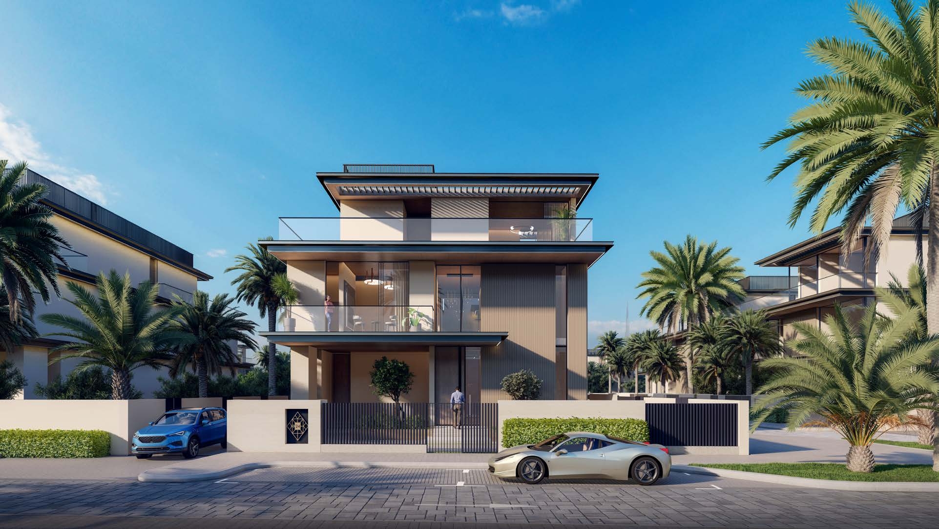 The villas at Nineteen Riviera Lagoon are distinguished by their two master bedrooms, each complete with walk-in wardrobes, en-suite bathrooms, and magnificent views from floor-to-ceiling windows. Lagoon-side living in this exclusive gated community of nineteen villas includes a community park with a children's play area, grand entrance, and Italian kitchens. The private second-floor entertainment space includes plunge pool access. Each property boasts large plot sizes and rooms for a chef, chauffeur, maids, and nanny. Additionally, modern amenities such as a car washing bay, in-house elevator, indoor green spaces, personalized interiors, and outdoor shower and washroom are included, all showcasing modern architecture. Also on the basement floor, there is parking accommodating from 7 to 12 cars per villa, and the complex provides additional parking for 35 vehicles.