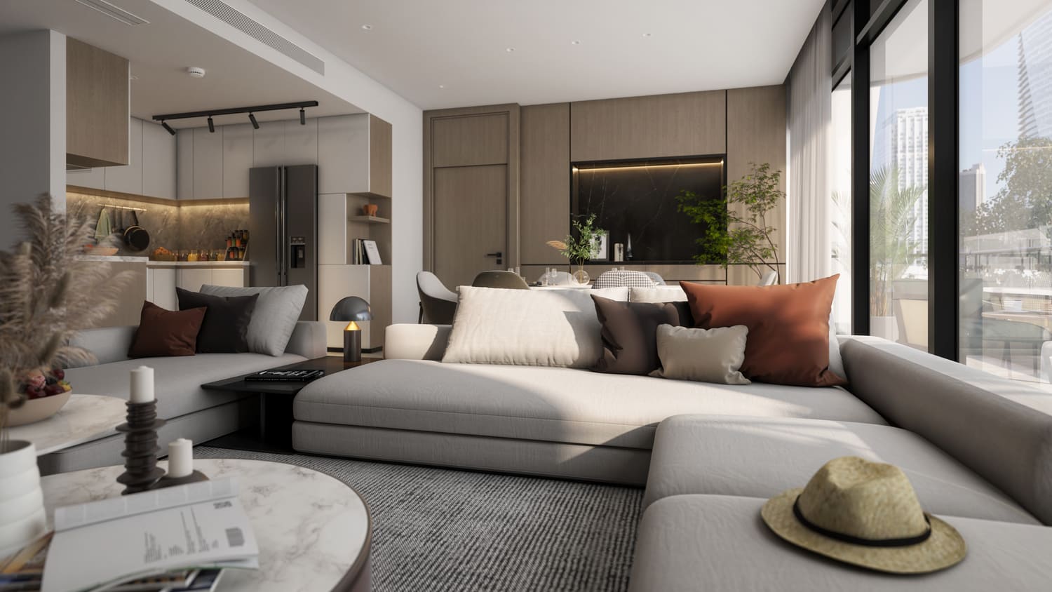 Апартаменты полностью отделаны современными высококачественными материалами.