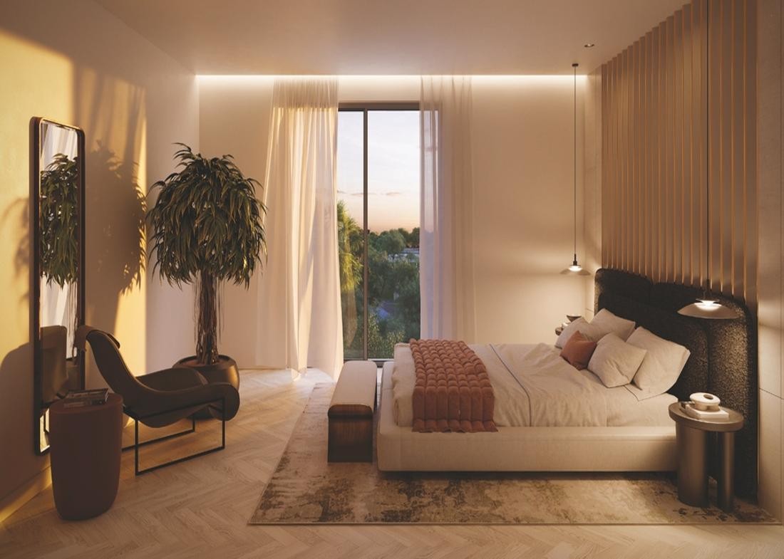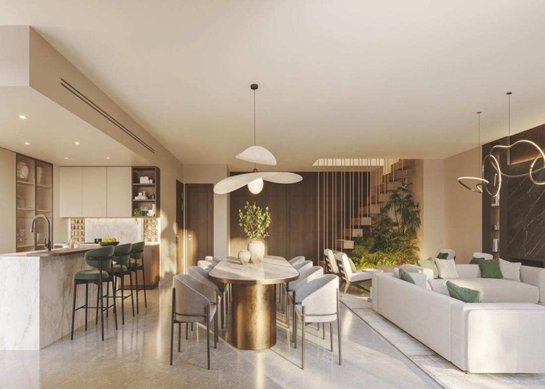 The collaboration of Woods Bagot, Mustard & Linen in crafting the interiors results in a captivating concept that elevates the living space. The opulent architectural craftsmanship, along with carefully positioned windows and balconies, contributes to a thoughtfully designed and aesthetically pleasing facade. This avant-garde development aspires to achieve Estidama 3 Pearl rating, Fitwel, and LEED Gold Certification, setting a benchmark for sustainability.