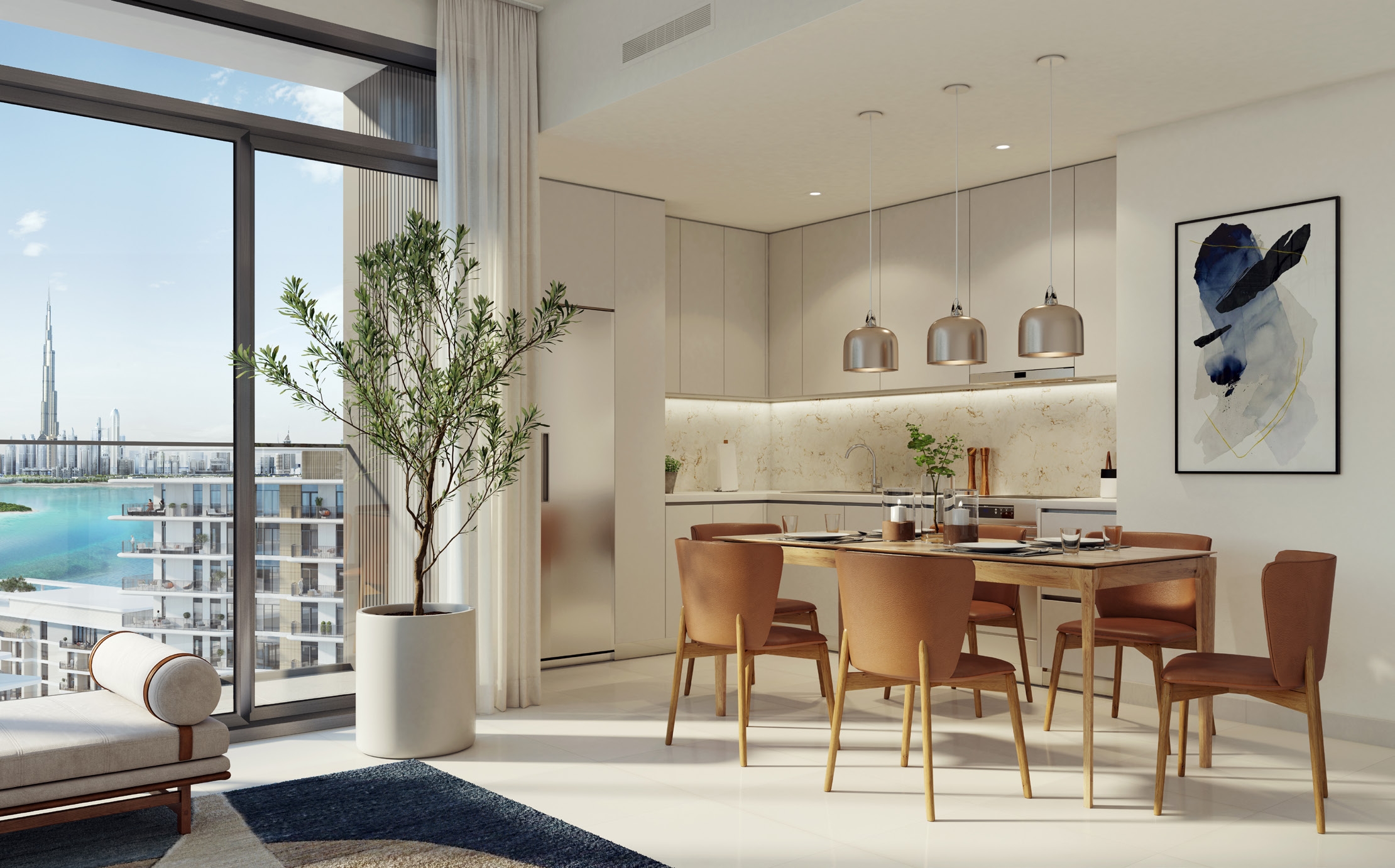 Dubai Creek Harbour offers a diverse range of residential options, from luxurious waterfront apartments to contemporary villas. The residences boast stunning views of the Dubai skyline, the Creek, and the iconic tower.