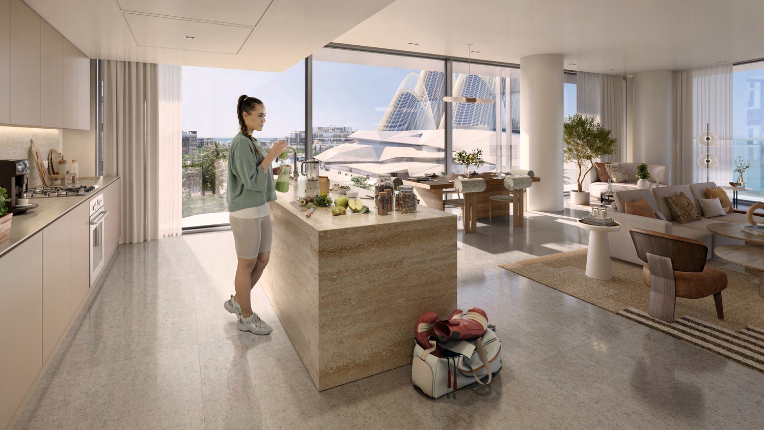 The Source by Aldar is an exciting community located in the heart of Abu Dhabi's Cultural District. It has been thoughtfully designed to provide a holistic wellness experience, immersing residents in nature, culture, and vitality, all while enabling them to reconnect with their complete selves. At The Source, residents can choose from a selection of modern 1, 2, and 3-bedroom apartments, each offering a comfortable and contemporary living space. The community is focused on promoting holistic well-being, and this starts right within your own home. With carefully designed interiors, you'll have a space that nurtures your mind and body.