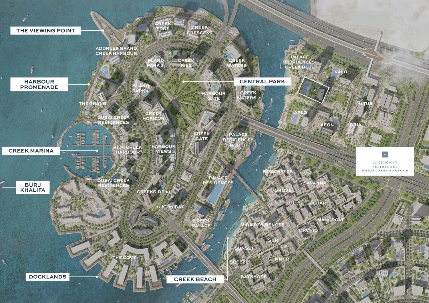 Situated within an impressive public realm, Address Residences Dubai Creek Harbour offers a dynamic environment with a scenic waterfront promenade, play areas, adventure playgrounds, cycling tracks, and skate parks. Enjoy the tranquility of a private beach along Dubai Creek, where every day offers a retreat into luxury.