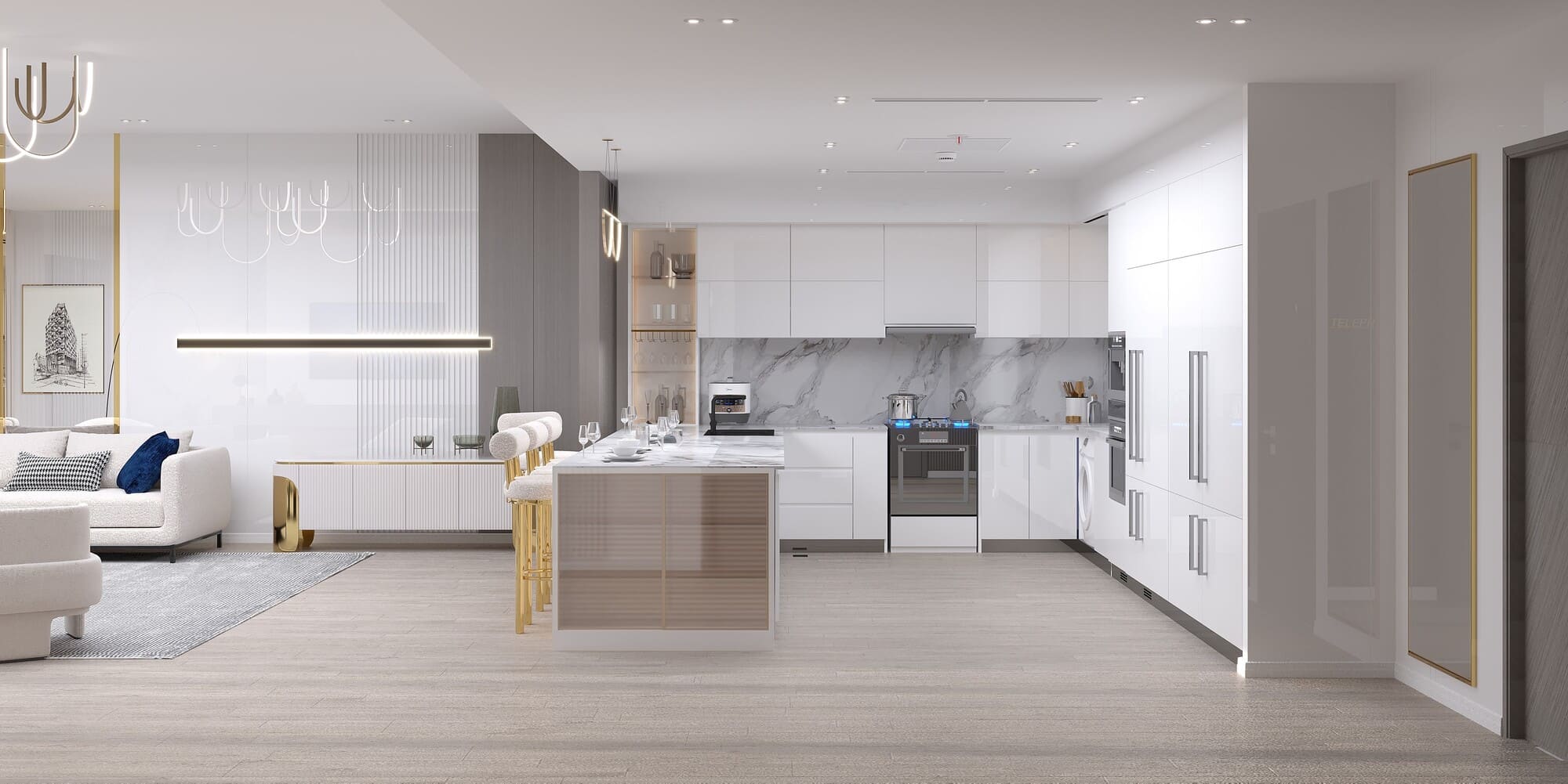 The lavish materials and uncompromised finishing throughout the building depict supreme quality and craftsmanship from only the most distinguished of international suppliers. All the fittings and fixtures within the apartments are hand-picked to perfectly compliment the interior design. The sliding glass doors and windows create a perfect balance between interior and exterior spaces while maintaining the highest level of environmental control and functionality.