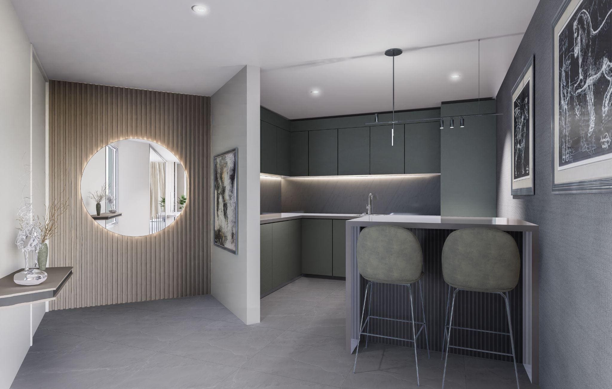 The apartments in Sky Gardens have been meticulously designed to maximize both functionality and aesthetics. The one-bedroom apartments boast a generous layout, featuring a well-appointed hallway, a convenient guest washroom, a spacious lounge area, and a comfortable double bedroom with a dressing area. The en-suite bathroom adds a touch of luxury to the living experience. With thoughtful design elements and ample space, these apartments offer a comfortable and stylish living environment for residents to unwind and relax.