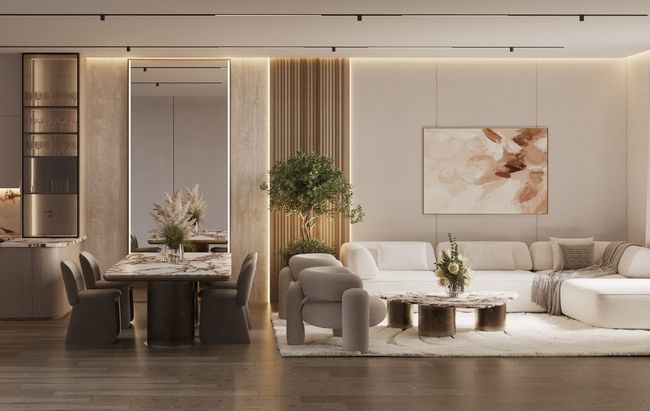 The interior design reflects the project’s ethos of refinement. Spacious and uninterrupted layouts create an airy and luminous atmosphere. High-quality finishes and premium materials enhance the sense of opulence.