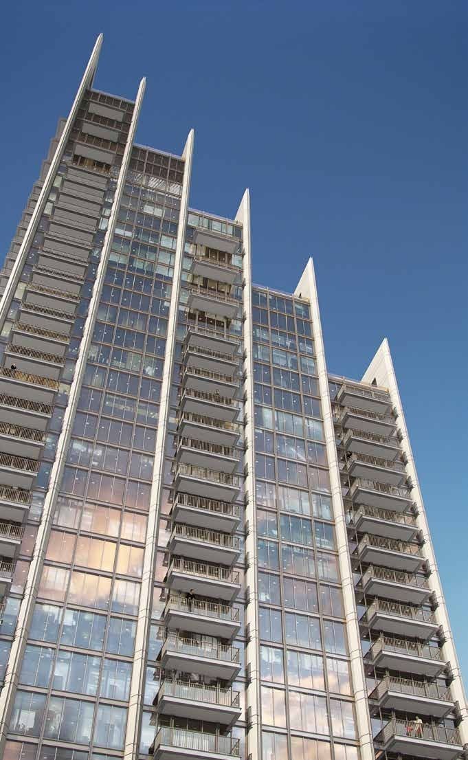 Floor-to-ceiling windows in the apartments and townhouses extenuate the feeling of space and light while the combination of subtle colours and textured surfaces ensures a luxurious finish. Open plan interiors are carefully arranged to include ample storage while top-of-the-range, custom kitchens and bathrooms lend exclusivity to the sumptuous decor.
