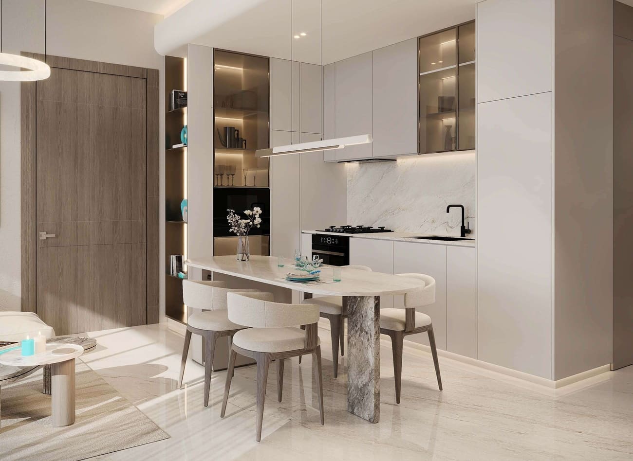 Balconies with outdoor cooling technology, revolutionizing the way outdoor spaces are experienced in the UAE. Enjoy cooled balconies and terraces all year round—an innovation that seamlessly blends wellness, comfort, and futuristic design.Modern finishing with high-quality materials