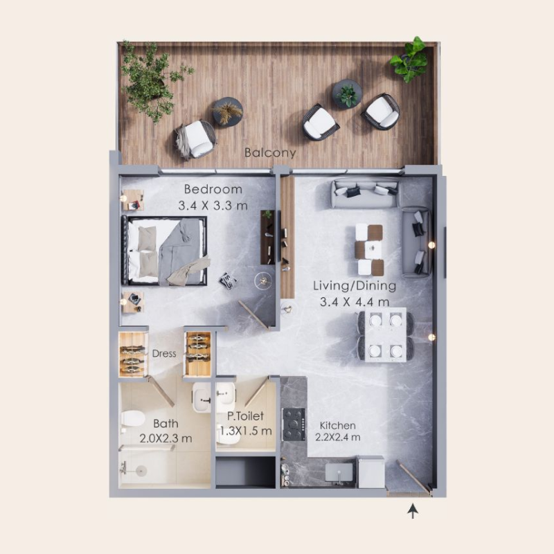Each apartment is thoughtfully crafted to provide residents with a sophisticated living experience, featuring modern interiors and high-end finishes. One of the highlights of Terra Tower is its stunning terrace, offering panoramic views of the iconic Dubai skyline—a perfect spot to unwind and enjoy the city’s vibrant atmosphere.