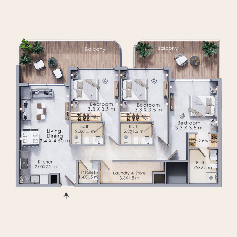 Welcome to Terra Tower, a luxurious 12-storey residential complex nestled in the prestigious Dubai Land Residential Complex. Offering a selection of studio, 1, 2, and 3-bedroom apartments, Terra Tower is designed to cater to diverse lifestyle needs while ensuring the utmost comfort and elegance.