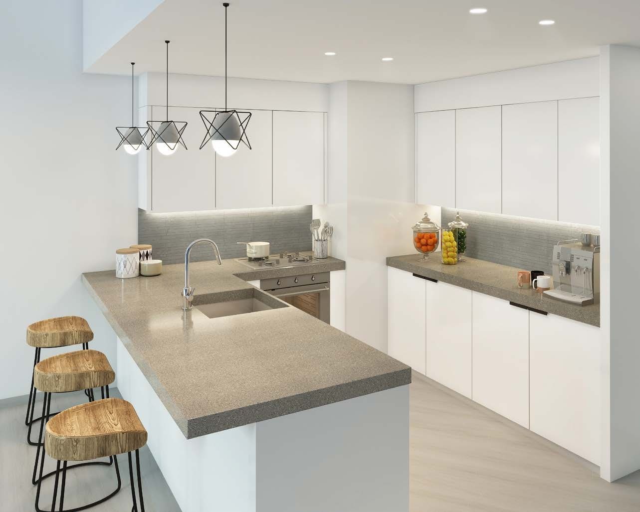 Kitchen is equipped by built-in hood, refrigerator, hob, oven & dishwasher