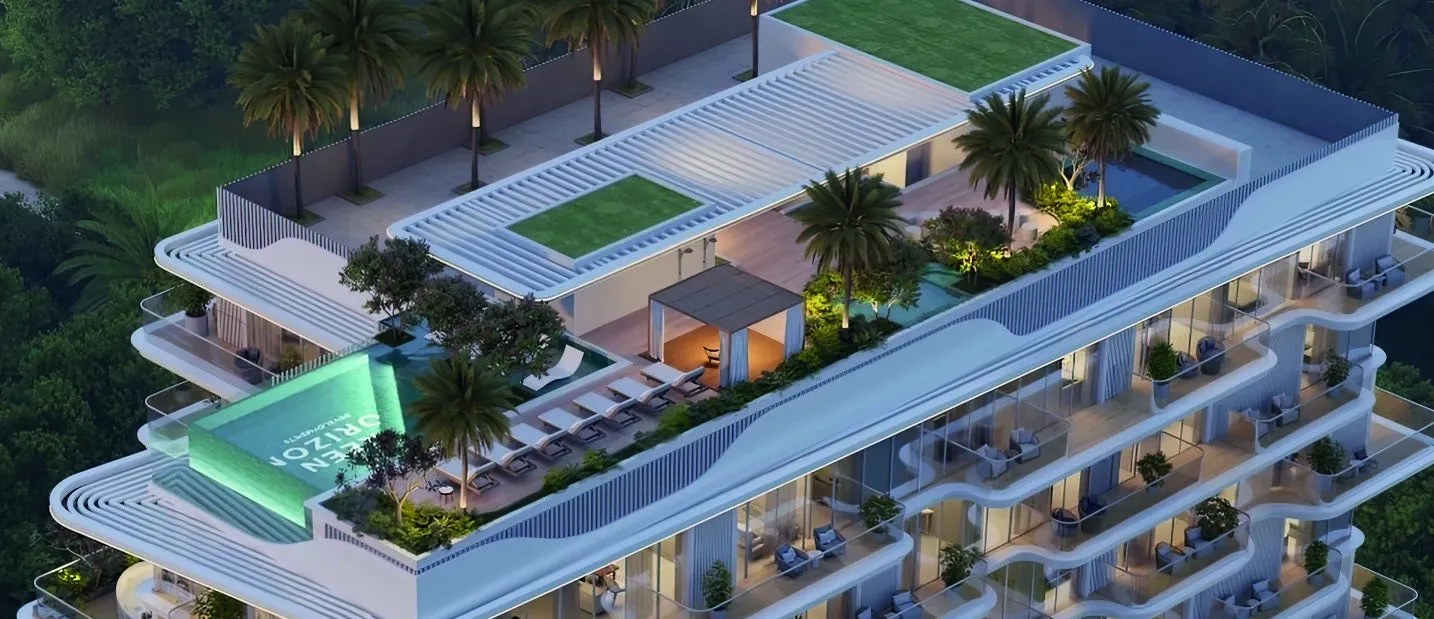 Residents benefit from a wide range of lifestyle amenities spread across three levels. Level One offers adult and children’s pools, indoor and outdoor gyms, a yoga and meditation terrace, steam and sauna rooms, cabanas, sunbeds, and a children’s play zone. Podium Two adds cabanas, seating pods, mini golf, billiards, table tennis, and a children’s activity zone. The rooftop elevates the experience with an infinity pool, jacuzzi deck, BBQ and alfresco lounges, outdoor seating, and panoramic views that celebrate island living.