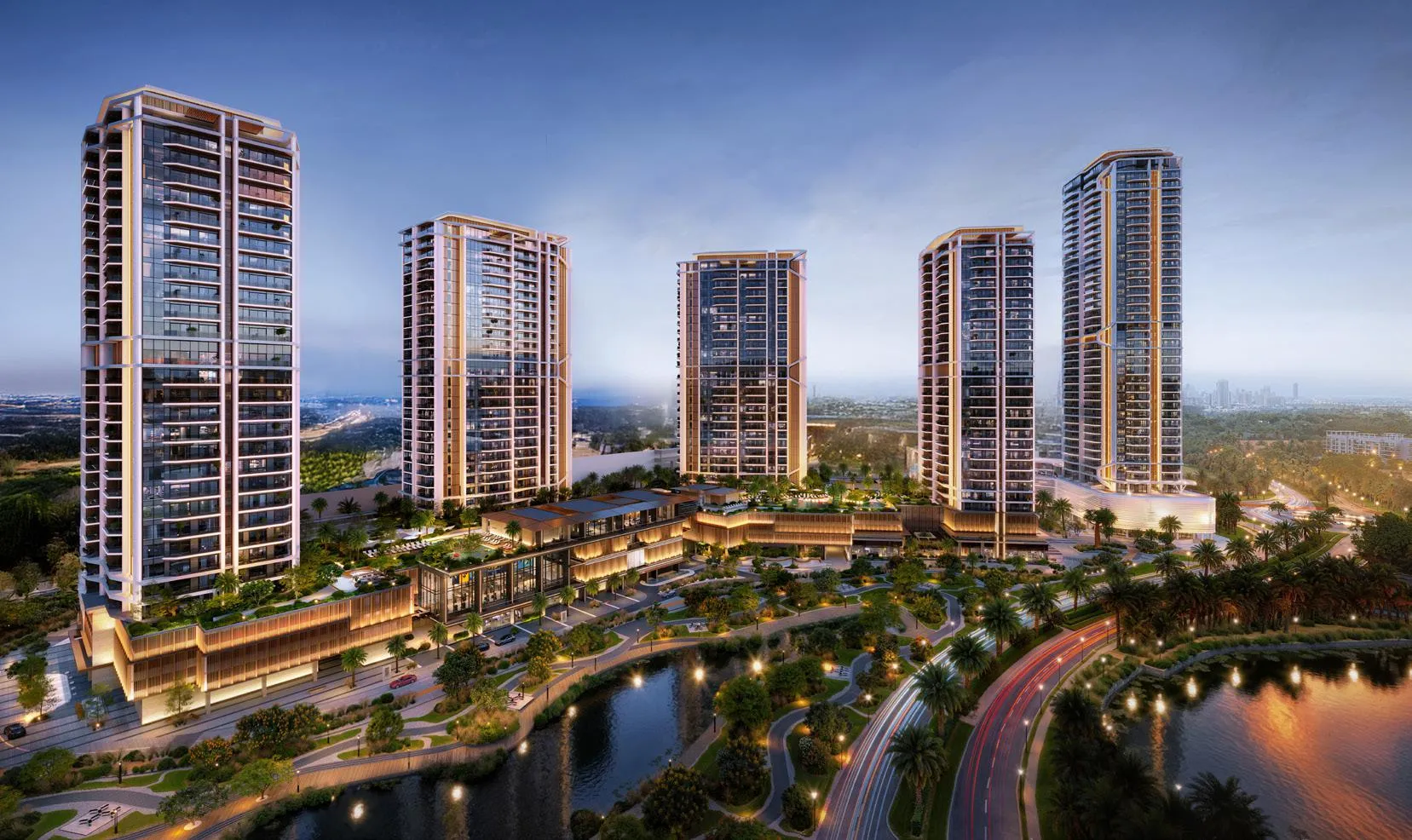 Inside, the residences are crafted as versatile, light-filled sanctuaries that adapt to every version of modern life — from quiet retreat to vibrant social energy. Open layouts, full-height windows, and elegant natural palettes create an atmosphere of warmth and balance. Thoughtful zoning ensures smooth movement through living, dining, and private areas, while select homes offer panoramic views of the lakes and greenery. Each residence reflects a philosophy of intentional living, where comfort, clarity, and style coexist effortlessly.
