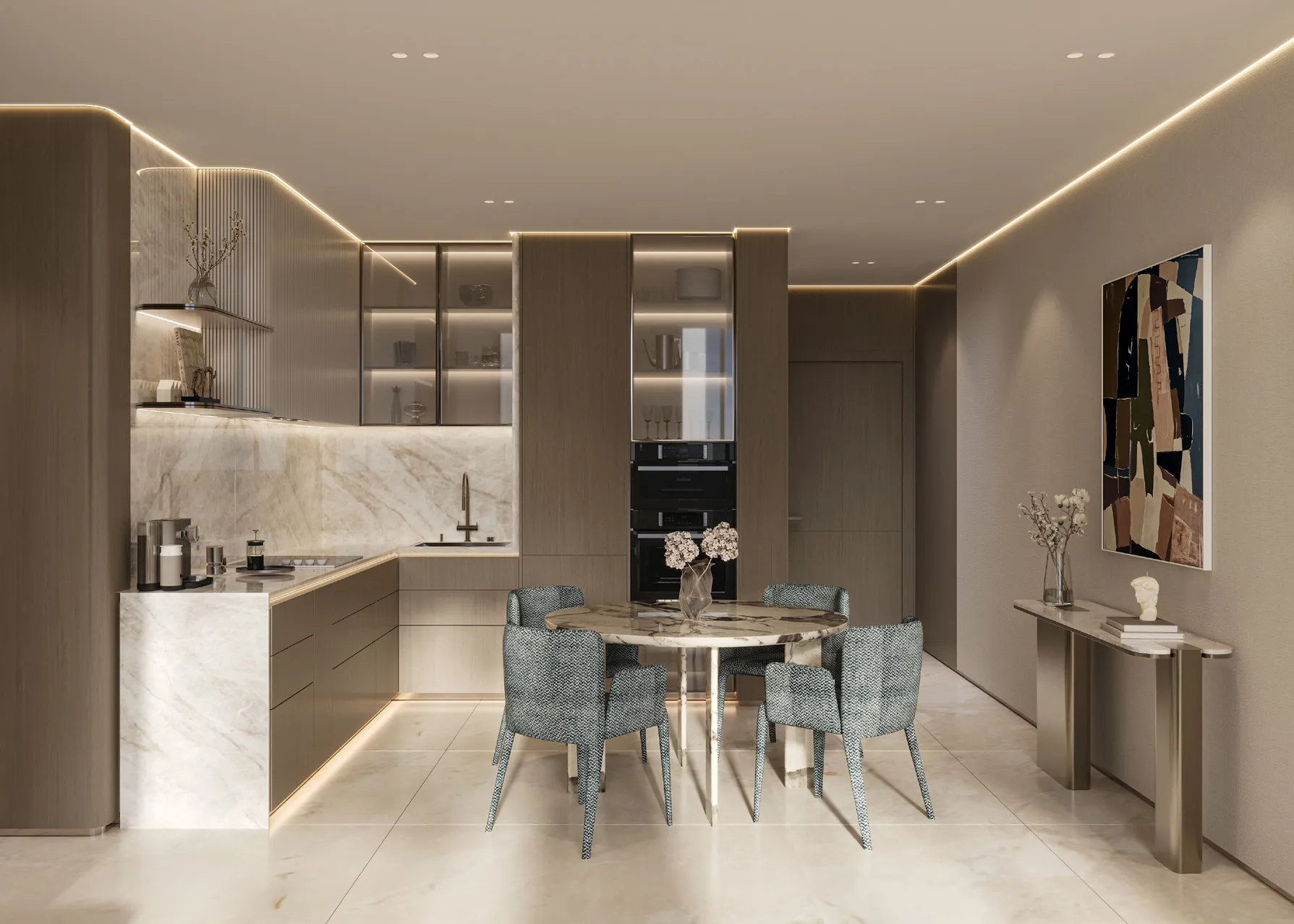 The project offers a variety of luxurious amenities for its residents. Here, you’ll find unique beach-edge pools, an infinity pool on the rooftop with panoramic views, an open-air cinema, a private fitness center, and a wellness area for rejuvenation. All communal spaces are thoughtfully designed to create an atmosphere of tranquility and comfort, where every moment of life is filled with relaxation and joy.