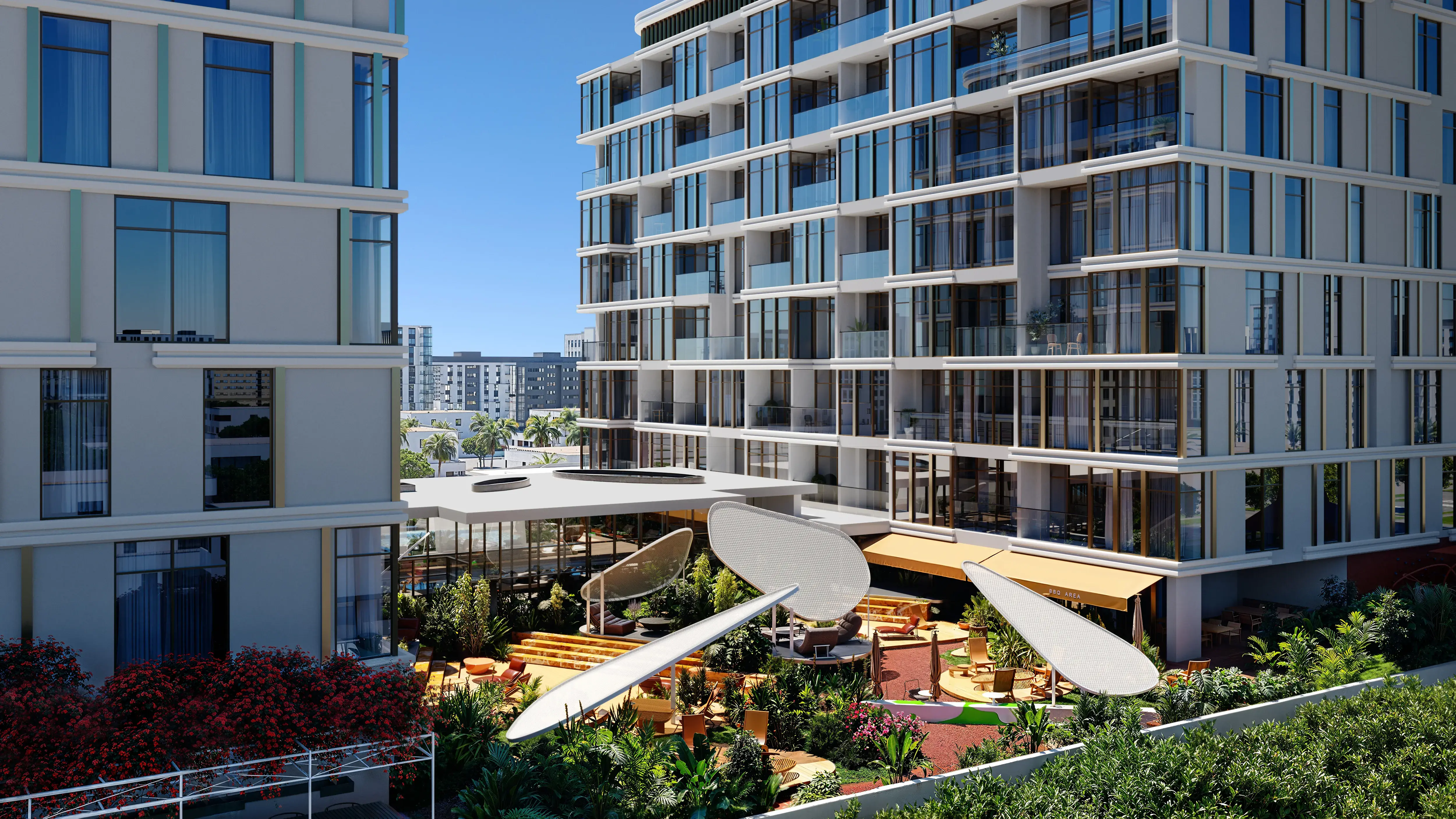 Arsenal Dubai is envisioned as a contemporary residential destination where design, lifestyle, and culture converge in the heart of the city. The development embraces a vibrant, urban aesthetic defined by expressive architecture, lush landscaped courtyards, and dynamic social spaces. Residents are surrounded by an atmosphere inspired by luxury summer vibes, artistic expression, and a refined metropolitan mood. With expansive terraces, integrated greenery, and leisure decks arranged between the buildings, Arsenal Dubai fosters a sense of openness and creativity woven into everyday living.