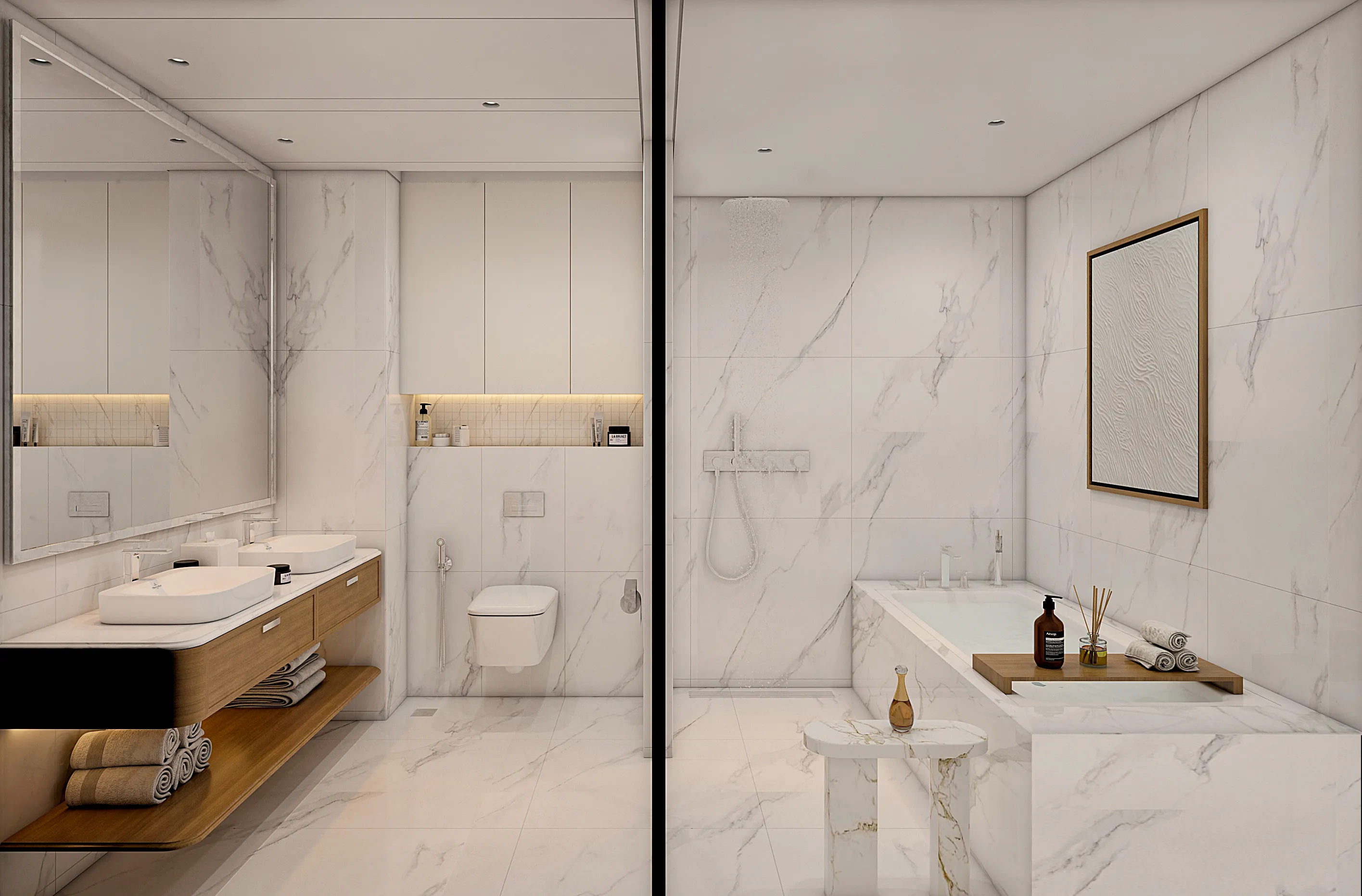 Резиденции в Azizi Riviera 56 передаются полностью меблированными и оформлены в современной интерьерной палитре с премиальными отделками и мягкими нейтральными тонами. Окна от пола до потолка усиливают естественное освещение, а высококачественные материалы создают ощущение сдержанной роскоши во всех жилых пространствах. Кухни полностью укомплектованы: установлены современные бытовые приборы и лаконичные шкафы, продуманные как для функциональности, так и для эстетической целостности. В ванных комнатах используются утончённые сантехнические элементы, элегантные поверхности и чистые минималистичные детали. Каждая квартира сформирована так, чтобы стать гармоничным домом «под ключ», объединяющим комфорт, изысканность и современные удобства.