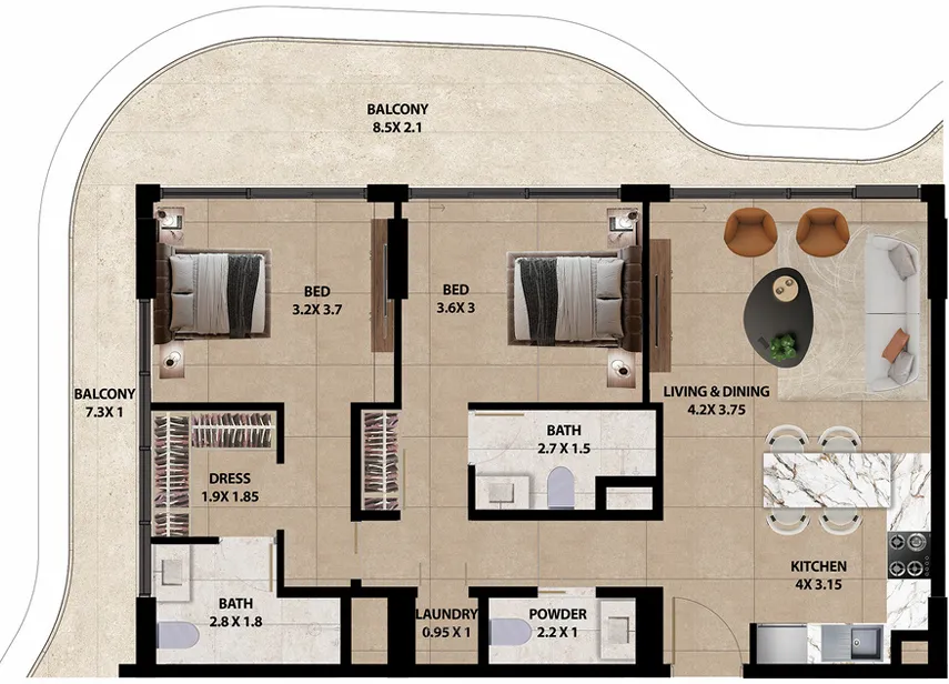 Marquis Horizon marks a defining residential address in Dubai South, conceived as a contemporary mid-rise community shaped by flowing architecture and understated elegance. Its distinctive wavy façade moves organically across levels, creating a sculpted form that responds naturally to light, airflow, and the surrounding environment. Designed as the flagship project of Marquis Developers in the district, the building embodies a vision of modern suburban living where balance, clarity, and long-term value take center stage.