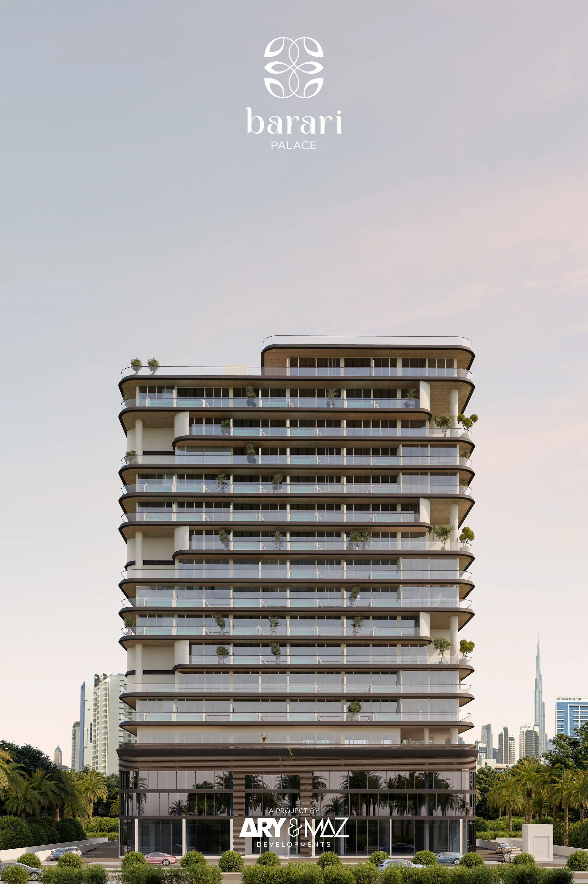 Barari Palace stands as a modern landmark shaped by elegance, calm, and purposeful design, rising at the edge of Al Barari’s iconic greenery. Its architecture blends quiet sophistication with timeless simplicity — warm tones, soft textures, and fluid geometries come together to create a serene retreat moments from the city yet worlds away from its noise. The residential offering includes studios, 1-bedroom and 2-bedroom apartments, as well as exclusive Sky Villas, all crafted with airy volumes, expansive windows, and layouts centered on clarity, comfort, and refined contemporary living.