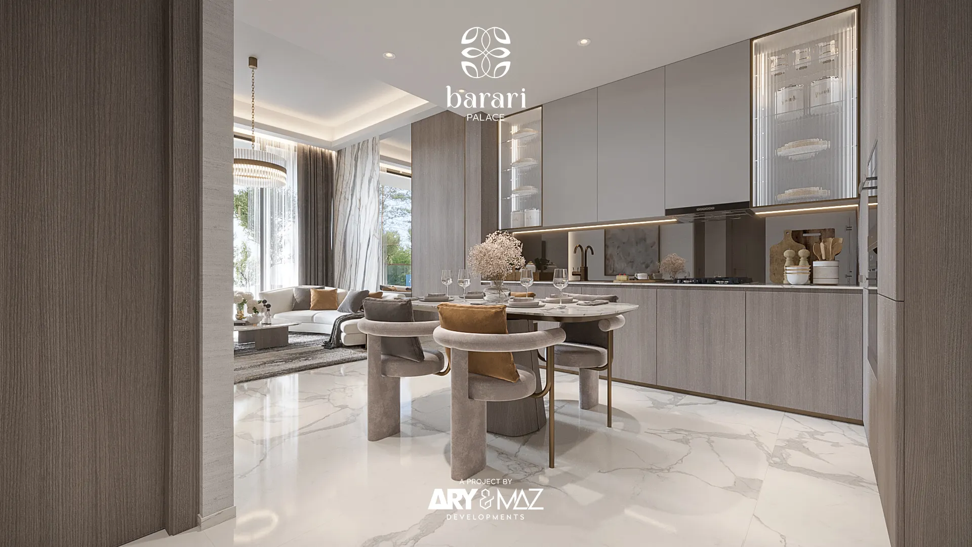 Interiors are shaped by a philosophy of quiet luxury, featuring modern finishing with high-quality materials that enhance warmth, elegance, and natural light. Kitchens are designed with streamlined cabinetry, natural materials, and subtle lighting that blend performance with beauty, while all homes are delivered unfurnished, allowing residents to personalize their sanctuary. With its composed aesthetic and crafted detailing, Barari Palace becomes a place where every day begins with clarity and ends in calm.