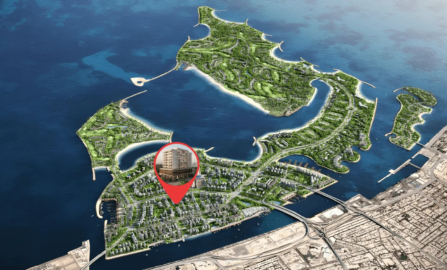 The islands are connected to the mainland via well-developed infrastructure, ensuring seamless access to the rest of the city. This prime location allows residents and visitors to enjoy the tranquility of island life while being just a short drive away from Dubai's bustling urban centers, including the iconic landmarks and vibrant districts such as Downtown Dubai, Dubai Marina, and Palm Jumeirah. The development includes a range of upscale amenities, including luxury hotels, gourmet dining options, high-end retail outlets, and world-class recreational facilities.