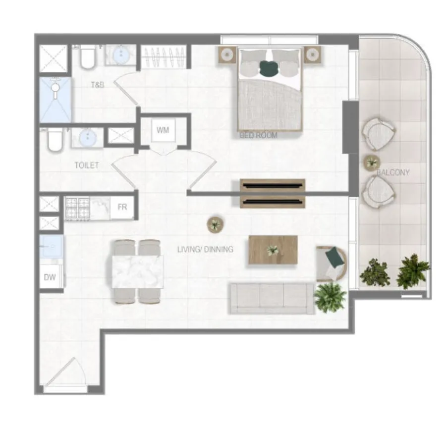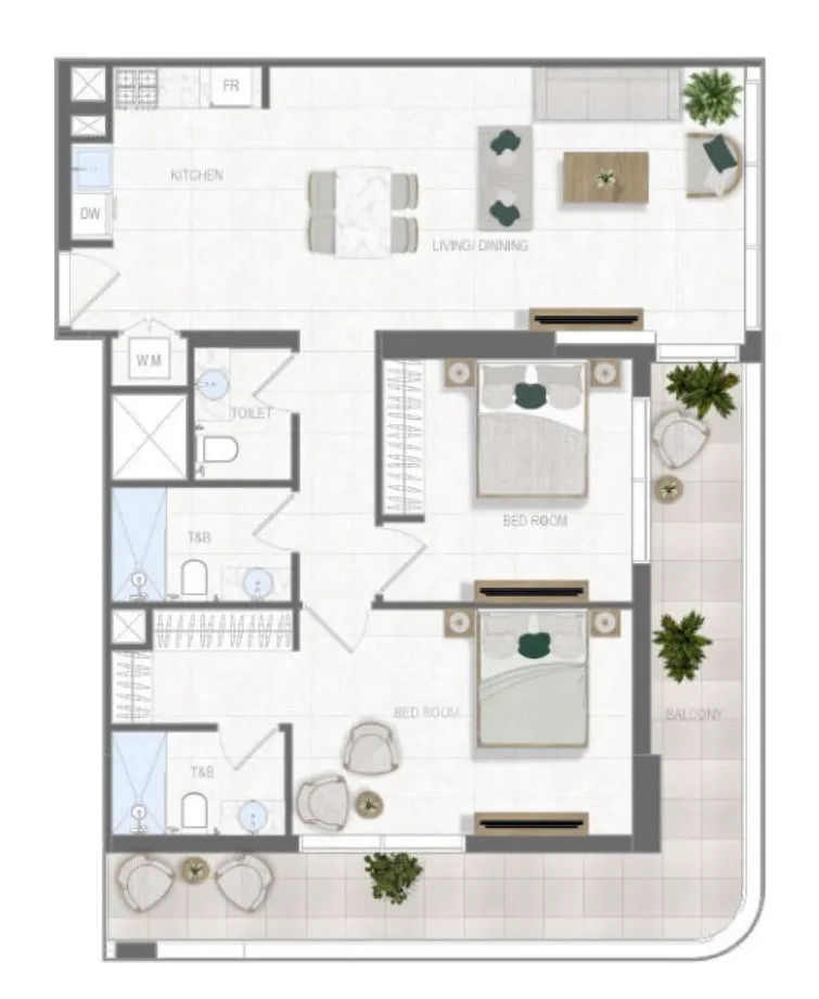 The apartments at VERDAN1A 5 feature modern, well-planned interiors designed to maximize comfort, space, and natural light. The layouts are clean and functional, reflecting a contemporary design approach that supports everyday living. The interiors emphasize simplicity, practicality, and a calm residential atmosphere that aligns perfectly with the project’s green living concept.