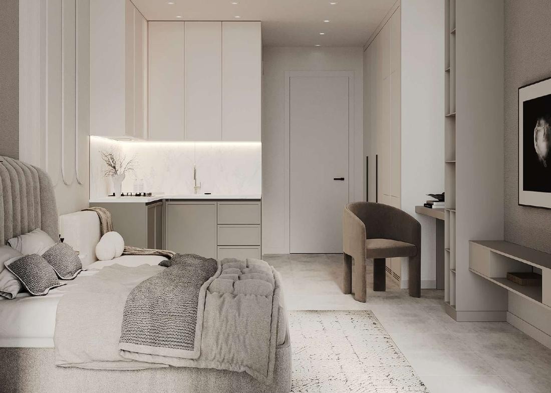 The apartments with high-standard finishing in this residential building are designed for modern urban living.